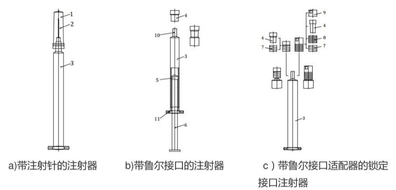 密封包装的带鲁尔接口头的注射器依照ISO594-1注射器的鲁尔接口是用一种适当的弹性材料做成的尖帽封闭。尖帽的底座是基于柔软的尖帽和坚硬注射器针管的摩擦,可以通过提高锥头表面处的粗糙度来增加摩擦。