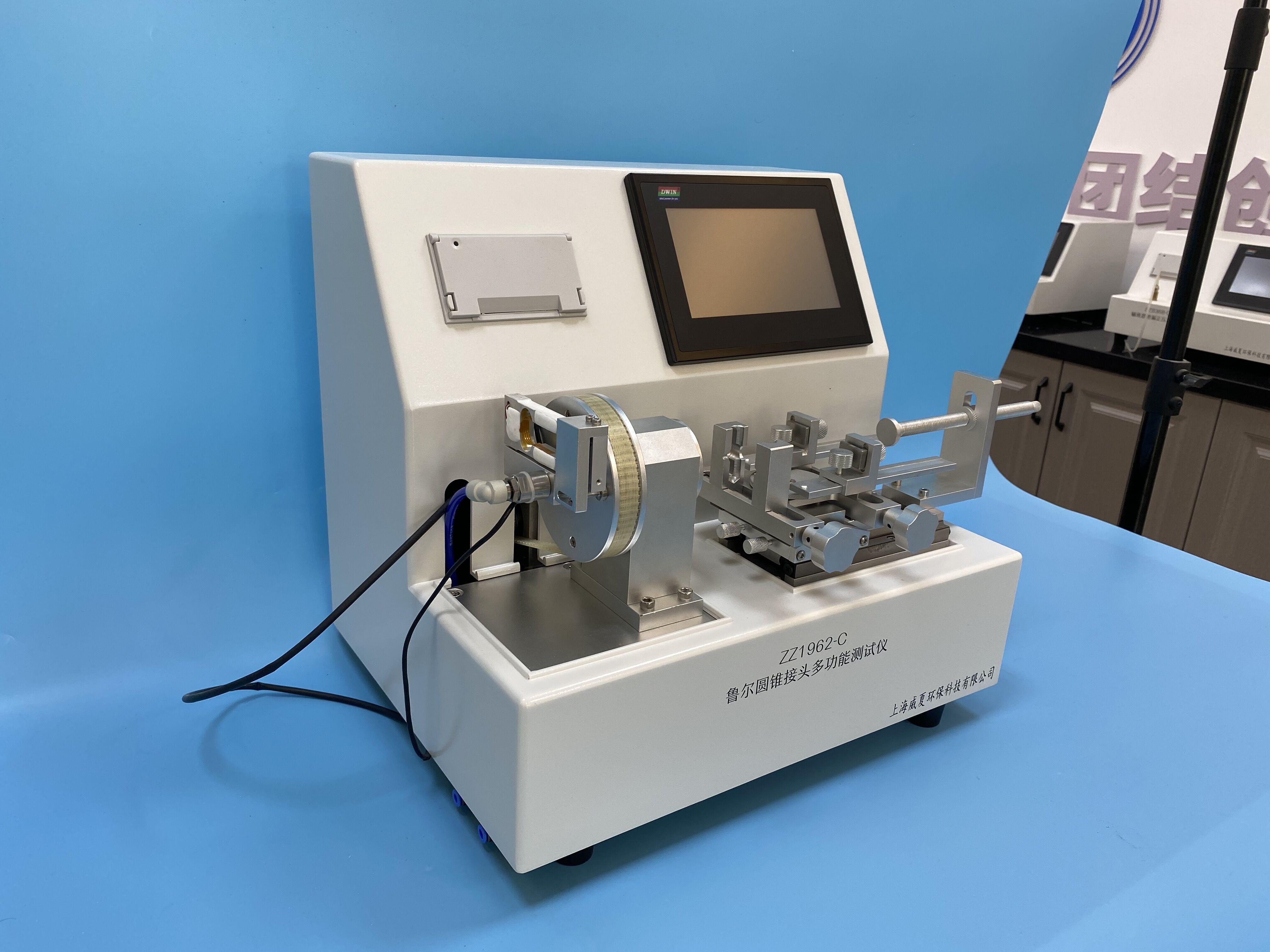 使测试结果更加规范化标准化。信息安全方面采用三级密码,让信息安全可靠。测试操控范围包括:测试项目、公称规格、产品名称、打印设定、测试、上行、下行、时间、标定,检定等功能设定。搭配机载打印测试可实时显示测试数据,。针对测试结果自动判断,不合格则启动自动蜂鸣报警,并由打印机打印出测试数据及结果以供分析。在测试过程中显示装配施加的轴向力、扭矩、保持时间、内部水压、可测试鲁尔接头的漏液、漏气、分离力、旋开扭矩、易装配性、抗滑丝性、应力开裂、压力衰减泄漏、正压液体泄漏、负压空气泄漏等各项性能,并在测试过程中显示装配施加的轴向力、扭矩,保持时间、内部水压、分离力、泄漏率值,包括各种6:100(鲁尔)接头,(锁定和非锁定),如输液器、输血器、输液针、导管、麻醉过滤器等。